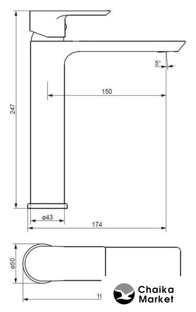 | Длина (вылет) излива | 150 мм |
