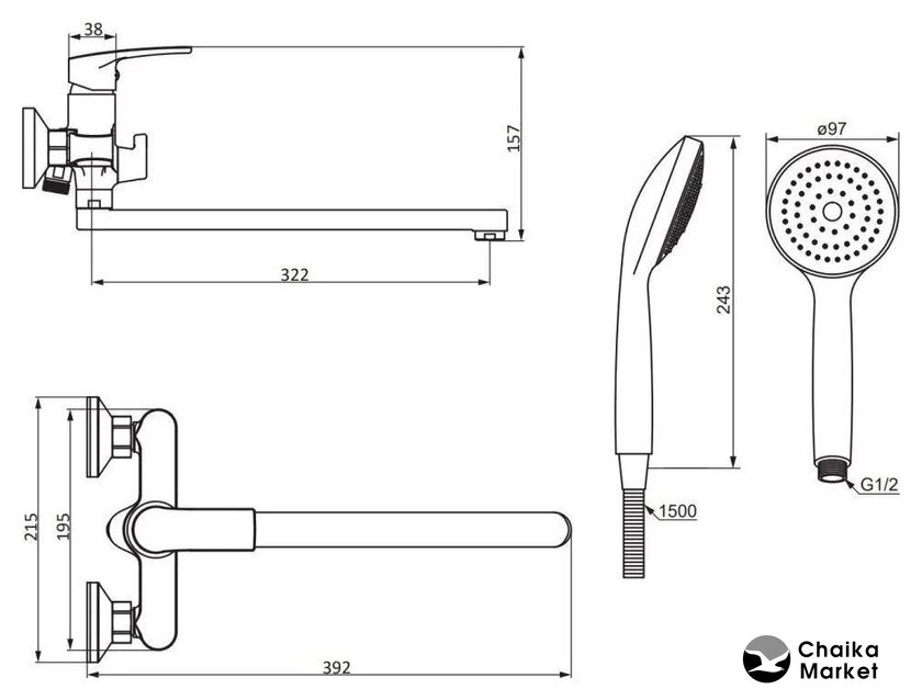 | Длина (вылет) излива | 322 — 322 мм |