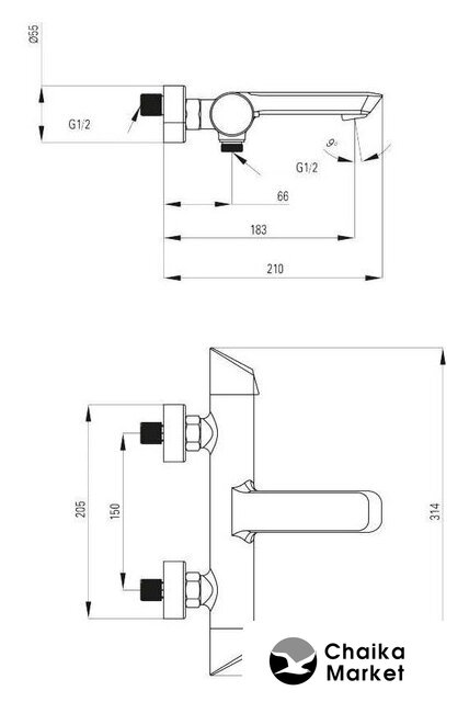 двухвентильный смеситель для ванны и душа, монтаж на ванну или полку