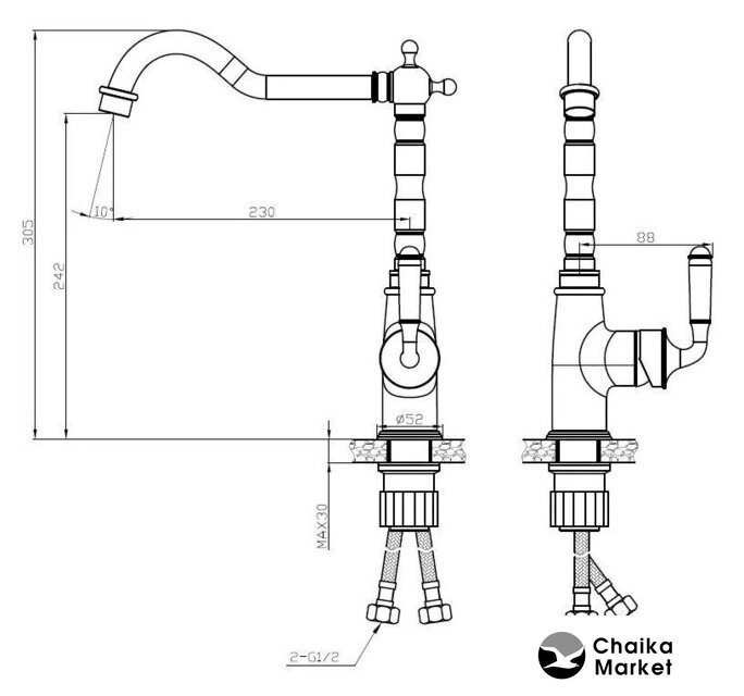 кнопочный смеситель для кухни, монтаж на раковину или столешницу
