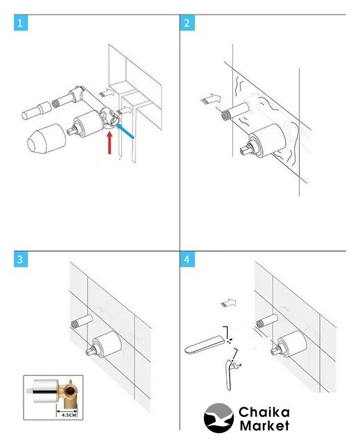 однорычажный смеситель для ванны и душа, монтаж на стену