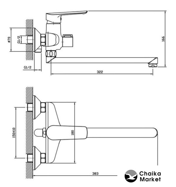 Длина (вылет) излива | 322 мм |