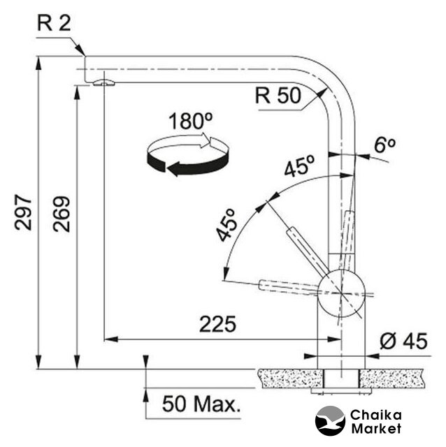 | Поворотный излив | 180 ° |