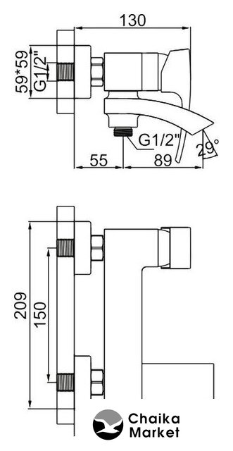 однорычажный смеситель для ванны и душа, монтаж на стену