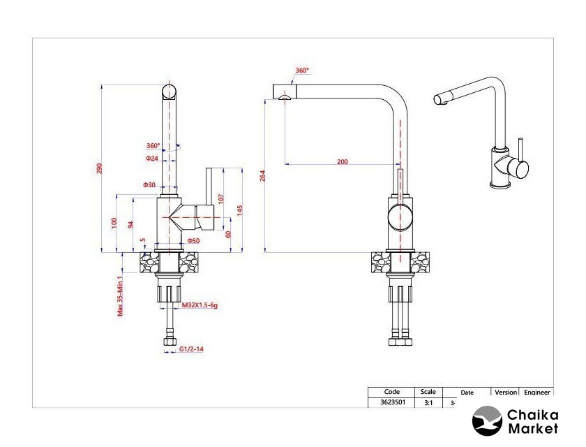 однорычажный смеситель для мойки, монтаж на раковину или столешницу