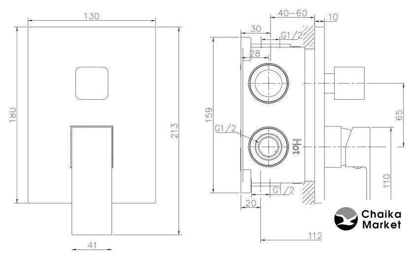 однорычажный смеситель для ванны и душа, монтаж на стену