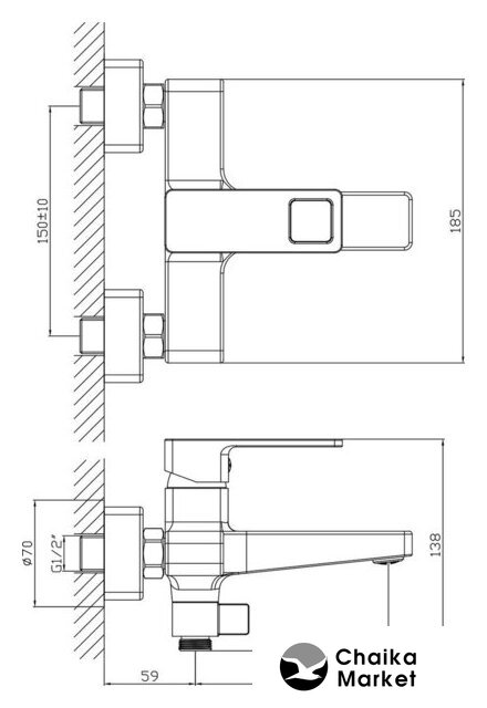 однорычажный смеситель для ванны и душа, монтаж на стену