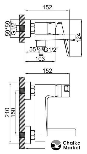 однорычажный смеситель для ванны и душа, монтаж на стену