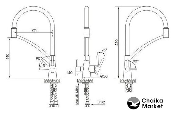 однорычажный смеситель для ванны и душа, монтаж на стену