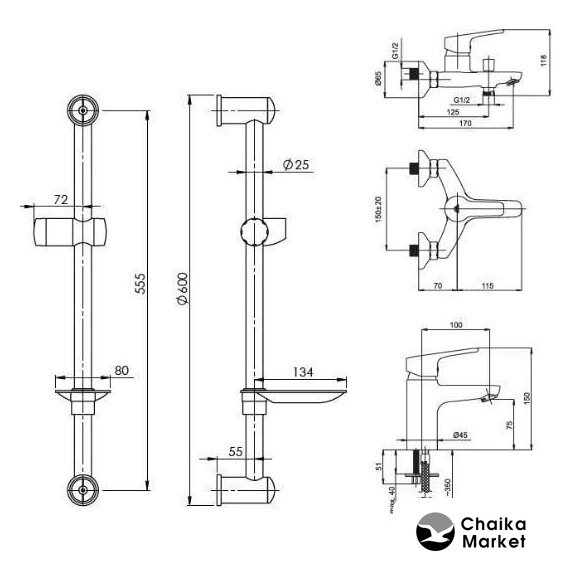 Высота | 118 мм (150 мм - смеситель для умывальника) |