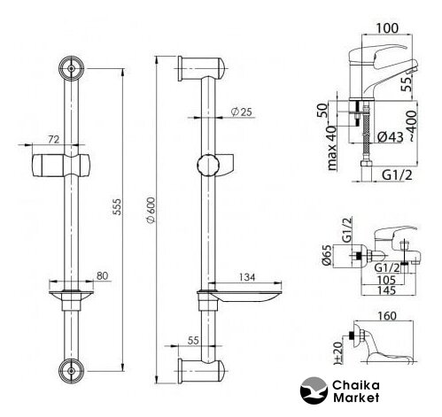 однорычажный комплект смесителей для умывальника/для ванны и душа, монтаж на раковину или столешницу