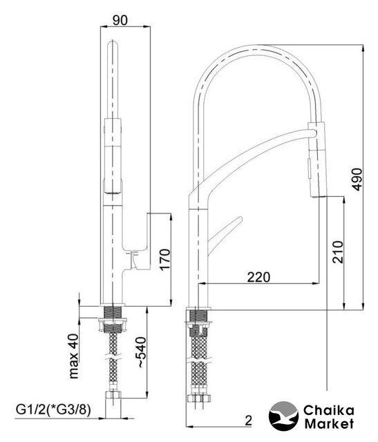 Выдвижной/гибкий излив | с аэратором (гибкий шланг) |