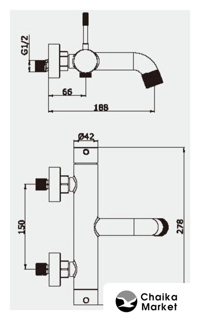 однорычажный смеситель для ванны и душа, монтаж на стену