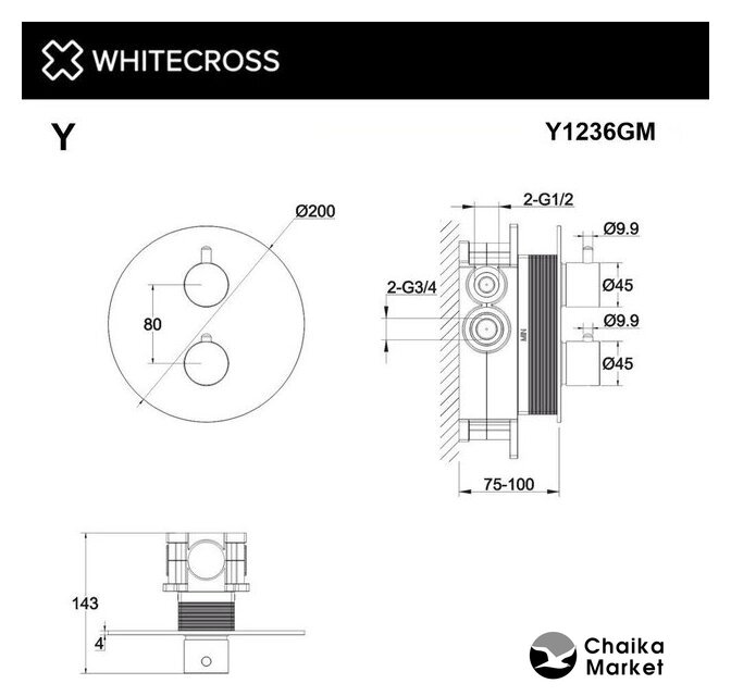 термостатический смеситель для душа, монтаж скрытый