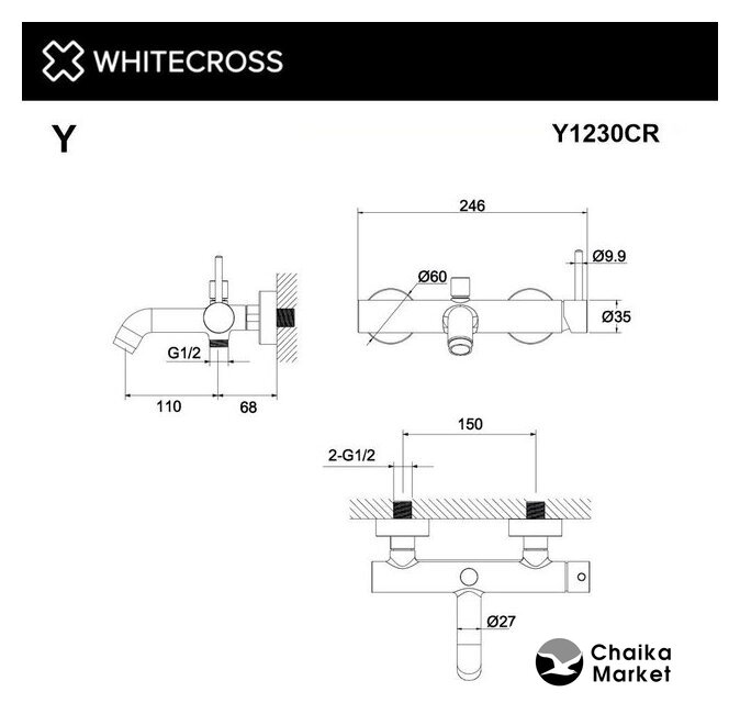 однорычажный смеситель для ванны и душа, монтаж на стену