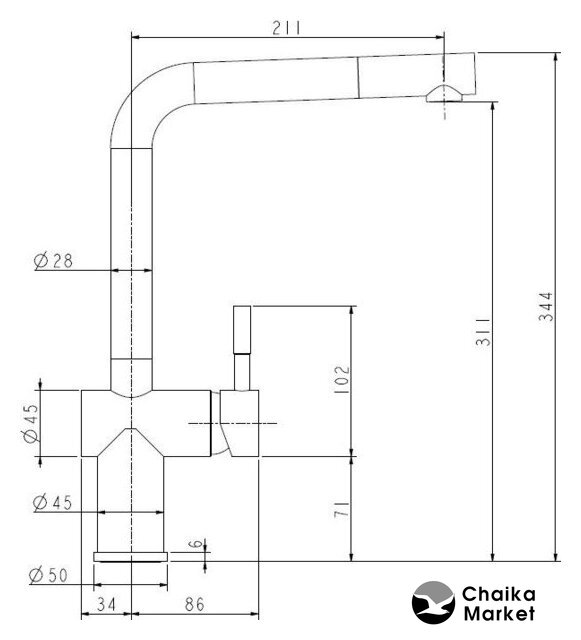 однорычажный смеситель для кухни, монтаж на раковину или столешницу