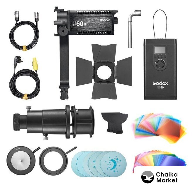 | Комплектация | - Осветитель светодиодный Godox S60Bi фокусируемый (с контроллером, кабелем питания, соединительным кабелем и ключом)- Проекционная насадка Godox SA-P (с линзой SA-01 85 мм) для S30- Диафрагма ирисовая Godox SA-06 для S30- Заслонка отсекающая Godox SA-07 четырехлепестковая для S30- Шторки Godox SA-08 восьмилепестковые для S30- Набор масок GOBO Godox SA-09 для S30- Держатель масок GOBO Godox SA-10 для S30- Набор цветных фильтров Godox SA-11C для S30- Набор светофильтров коррекции цветовой температуры Godox SA-11T для S30- Сумка для переноски CB72 |