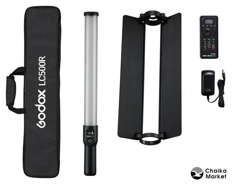 | Комплектация | Осветитель светодиодный Godox RGB LC500R RC-R9 пульт дистанционного управленияДвусторонние шторкиЗарядное устройство (16,8В/1,2А)Портативная сумка-кейсРуководство по эксплуатацииГарантийный талон |