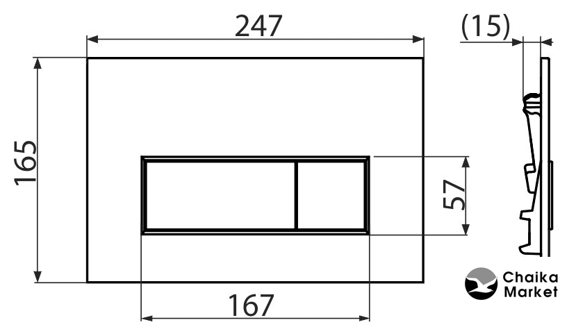 для унитаза, управление механическое, смыв двойной, скрытый монтаж, 246x164 мм, цвет: хром