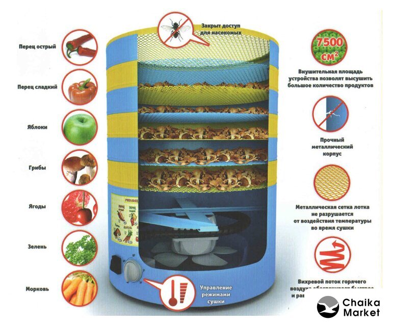 600 Вт, 6 подносов, механическое управление, нижний нагревательный элемент