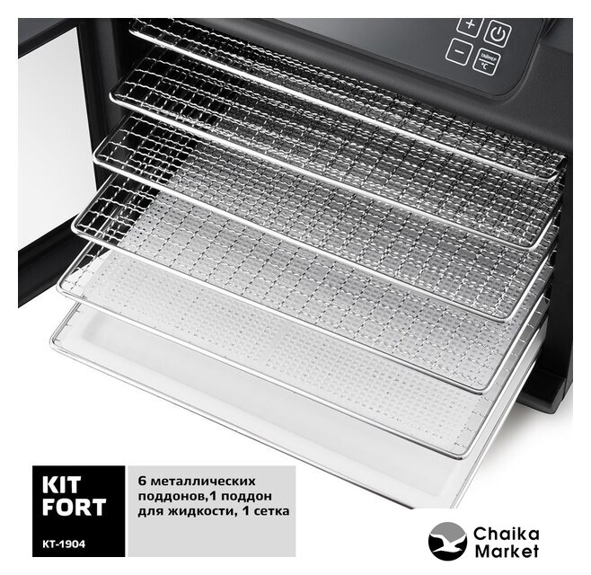 500 Вт, 6 подносов, сенсорное управление, сбоку нагревательный элемент