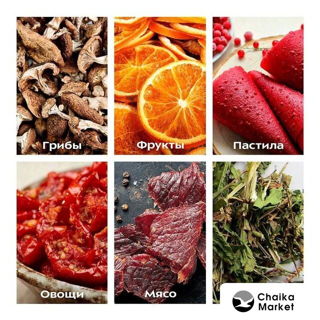 Комплектация | - 6 поддонов для сушки;- 1 поддон для жидкости. |