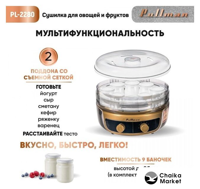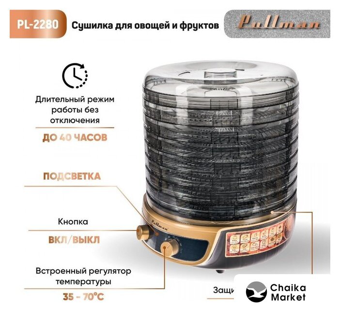 500 Вт, 9 подносов, электронное управление, нижний нагревательный элемент