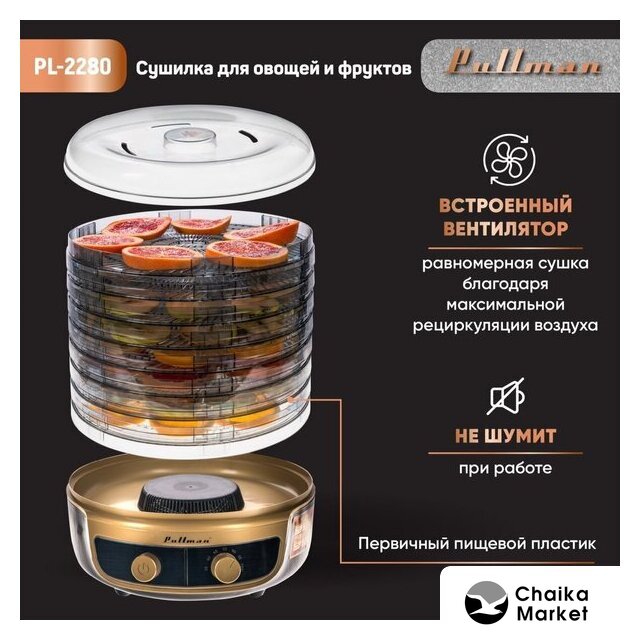 800 Вт, 6 подносов, механическое управление, нижний нагревательный элемент
