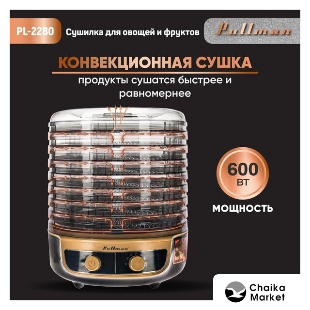 600 Вт, 6 подносов, механическое управление, нижний нагревательный элемент