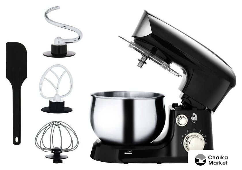 1200 Вт, планетарное смешивание, объем чаши: 5.5 л, терки, мясорубка, блендер