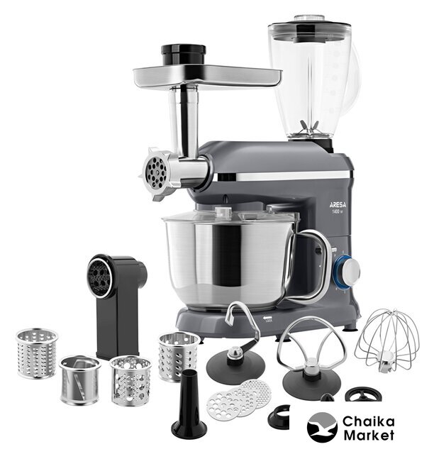 1400 Вт, планетарное смешивание, объем чаши: 4.5 л, терки, мясорубка, блендер
