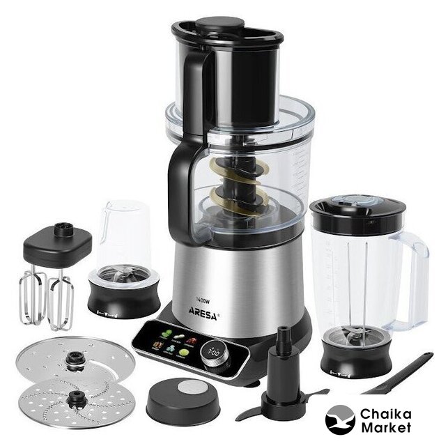 | Функции | блендер, взбивание, смешивание, замешивание дрожжевого теста, измельчитель, рубка, терка, шинковка, ломтерезка, драники, помол круп, кофе |
