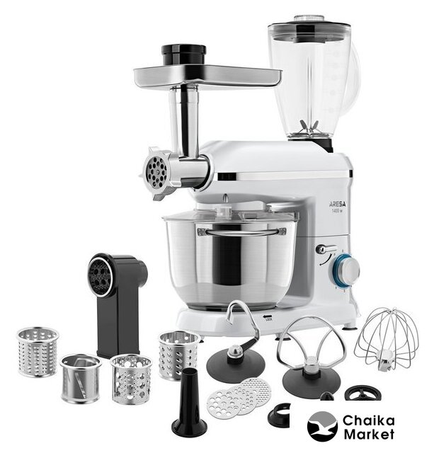 1400 Вт, планетарное смешивание, объем чаши: 4.5 л, терки, мясорубка, блендер