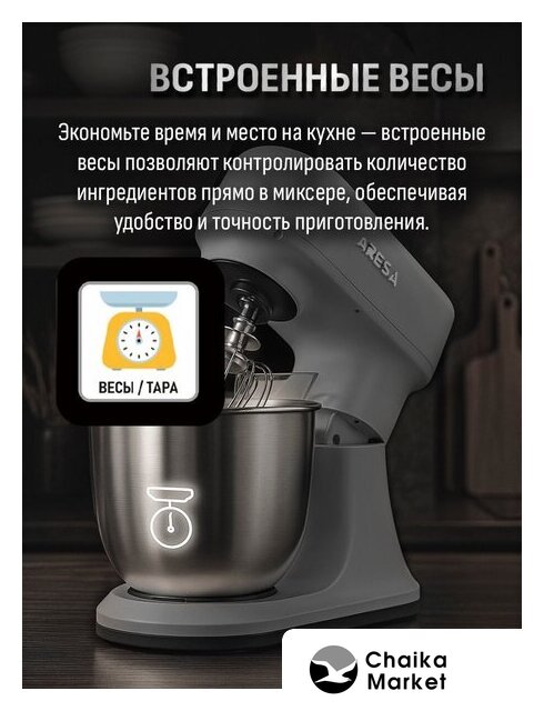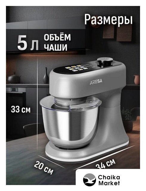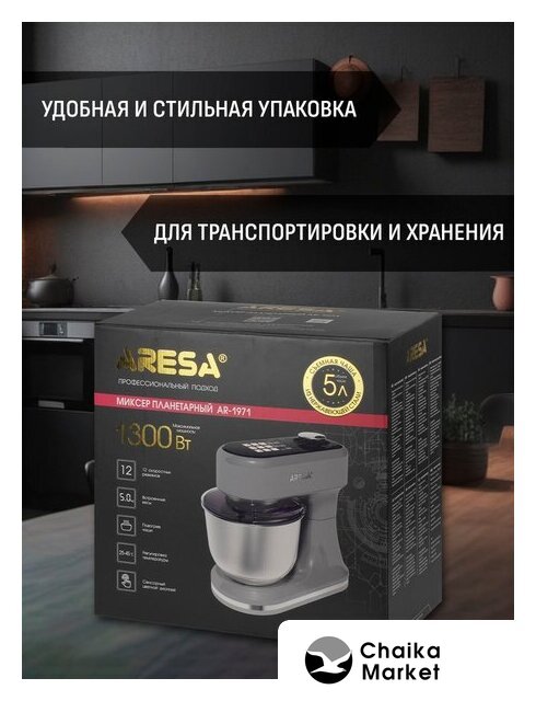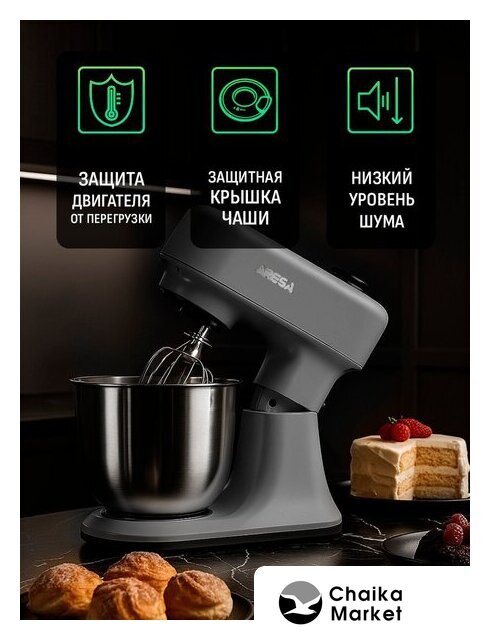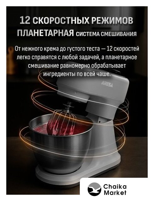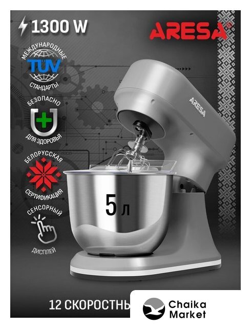 1300 Вт, планетарное смешивание, объем чаши: 4.8 л