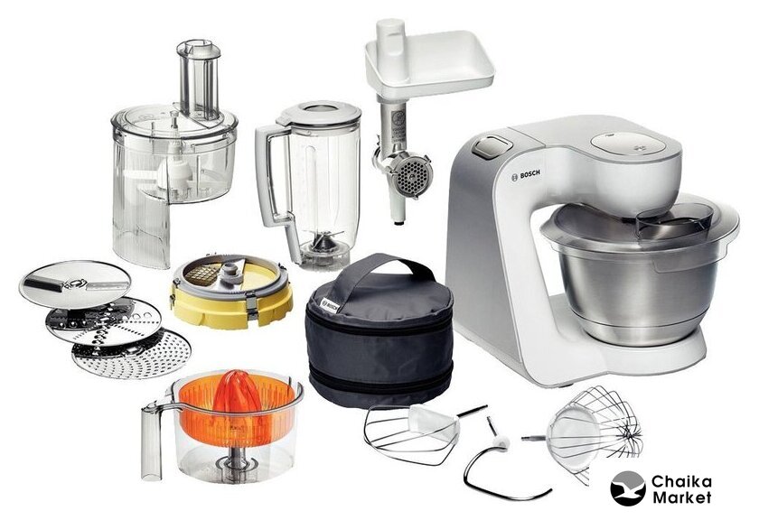 900 Вт, планетарное смешивание, объем чаши: 3.8 л, терки, мясорубка, соковыжималка, блендер