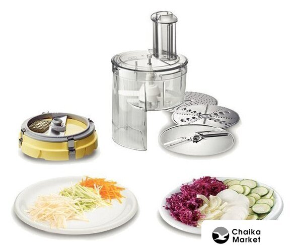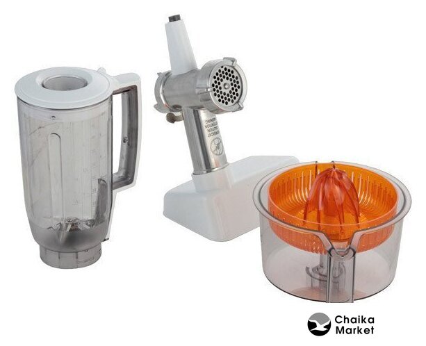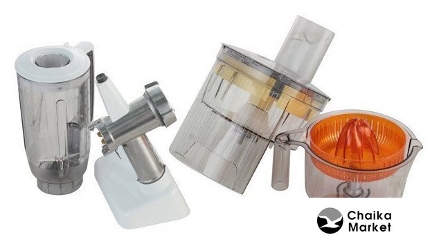 Функции | мясорубка, блендер, цитрус-пресс, взбивание, смешивание, замешивание дрожжевого теста, терка, шинковка, ломтерезка, нарезание кубиками |