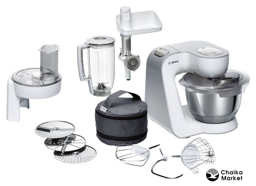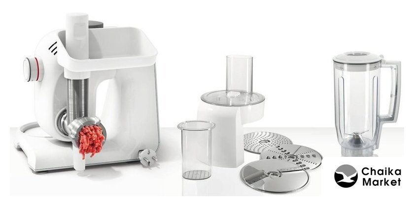 1000 Вт, планетарное смешивание, объем чаши: 4.5 л, мясорубка, блендер