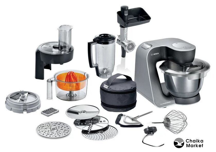 1000 Вт, планетарное смешивание, объем чаши: 3.9 л, терки, мясорубка, соковыжималка, блендер