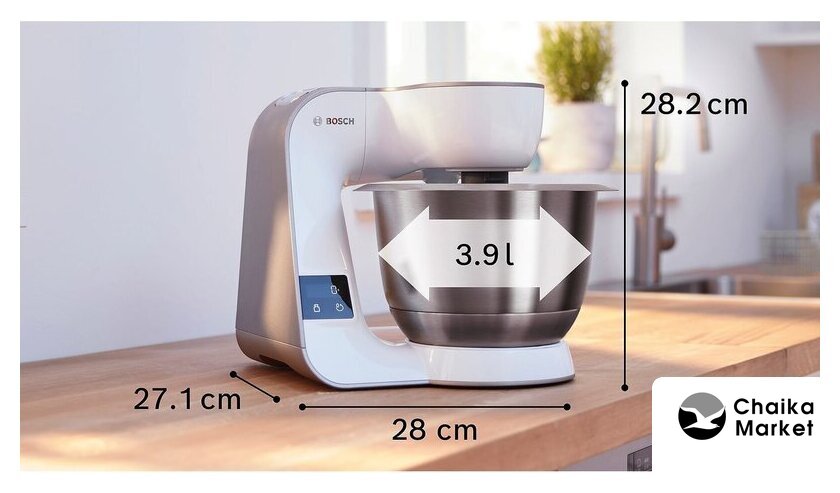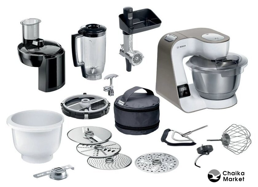 1000 Вт, планетарное смешивание, объем чаши: 3.9 л, терки, мясорубка, блендер