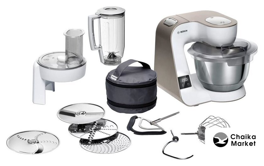 1000 Вт, планетарное смешивание, объем чаши: 3.9 л, терки, блендер