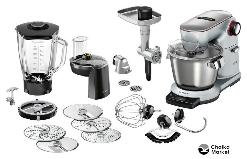 1500 Вт, планетарное смешивание, объем чаши: 5.5 л, терки, измельчитель, мясорубка, соковыжималка, блендер