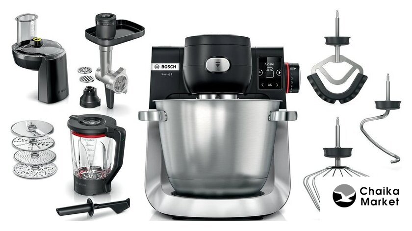 Функции | мясорубка, блендер, взбивание, смешивание, замешивание дрожжевого теста, измельчитель, рубка, терка, шинковка, ломтерезка, драники |