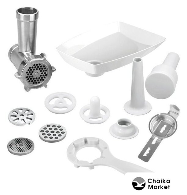 | Функции | мясорубка, блендер, взбивание, смешивание, замешивание дрожжевого теста, измельчитель, рубка, терка, шинковка, ломтерезка, приготовление мороженого |