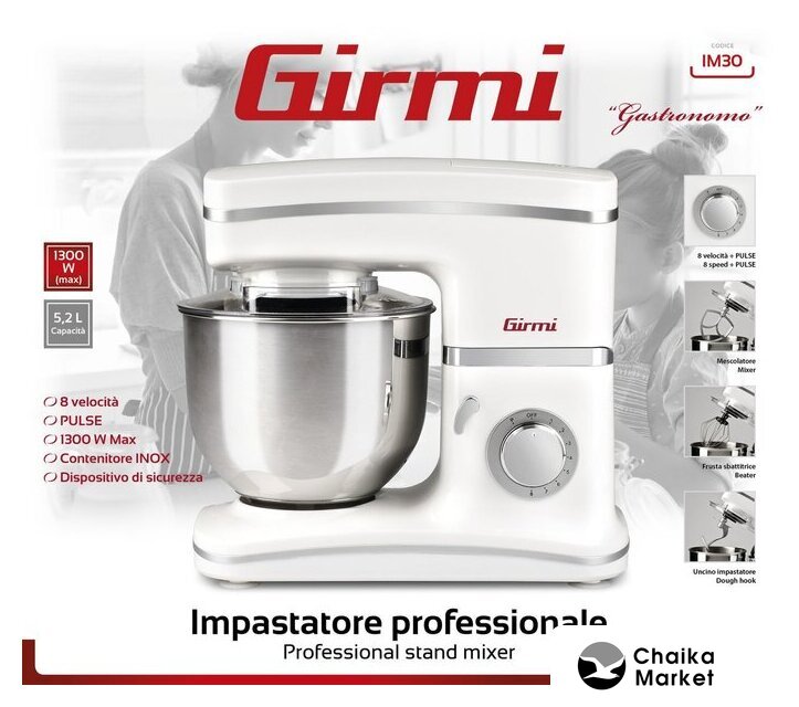 1300 Вт, планетарное смешивание, объем чаши: 5.2 л, мясорубка, блендер