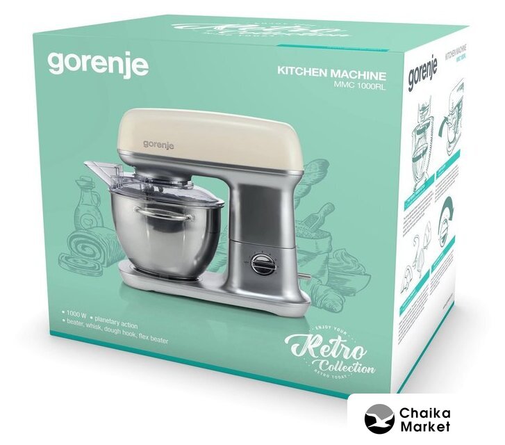 1000 Вт, планетарное смешивание, объем чаши: 3.9 л, терки, блендер
