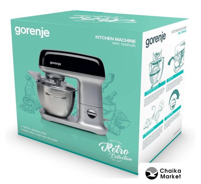 1000 Вт, планетарное смешивание, объем чаши: 4.5 л, мясорубка, блендер