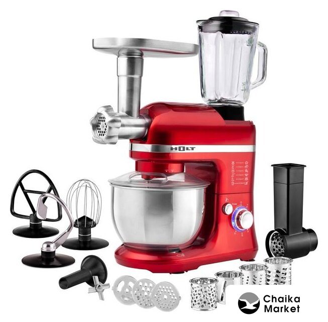 Полная комплектация | Мясорубка c 3 формовочными дисками и насадкой для колбасы;Диск для средней рубки;Диск для крупной рубки;Диск для рубленого мяса;Овощерезка с 4 насадками;Терка крупная;Терка мелкая;Терка для драников;Терка для шинкования;Блендер с чашей из термостойкого стекла и ножом из нержавеющей стали;Насадка для взбивания;Насадка для смешивания;Насадка для замешивания теста |