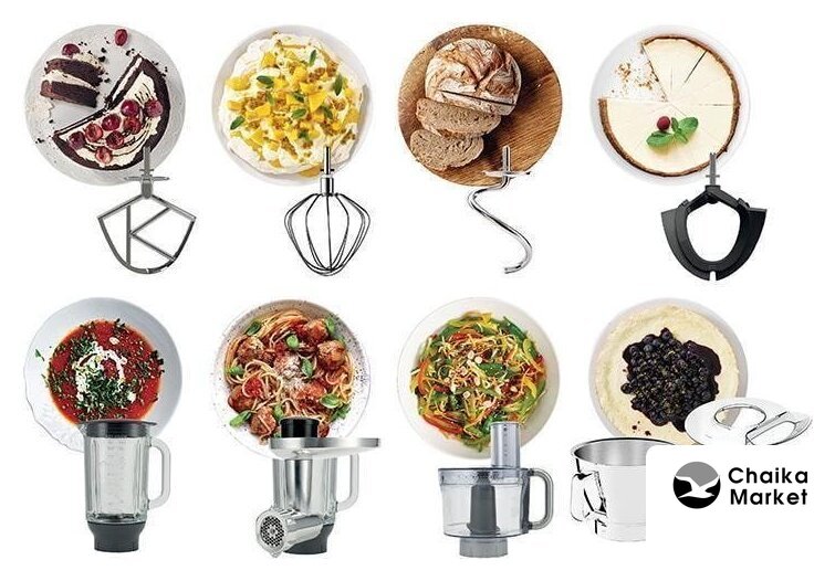 1200 Вт, планетарное смешивание, объем чаши: 7 л, мясорубка, блендер