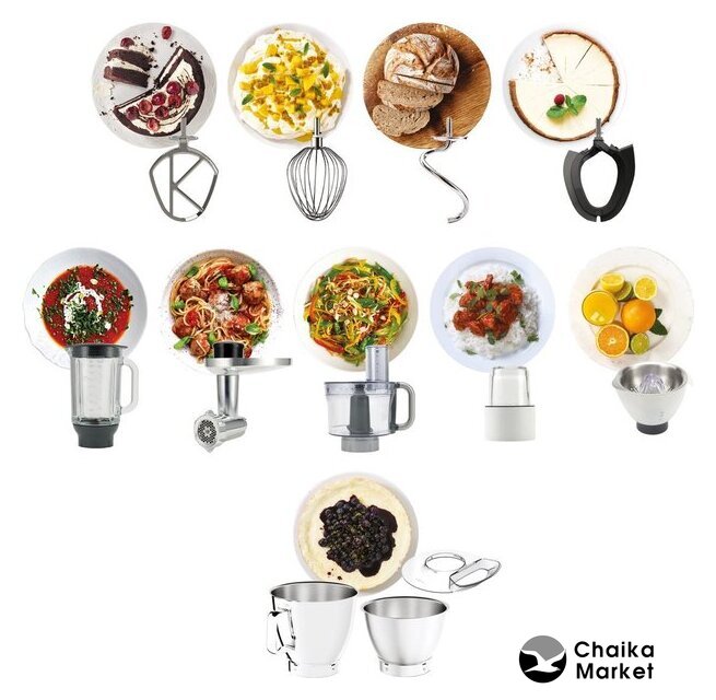 Функции | мясорубка, блендер, цитрус-пресс, взбивание, смешивание, замешивание дрожжевого теста, измельчитель, рубка |