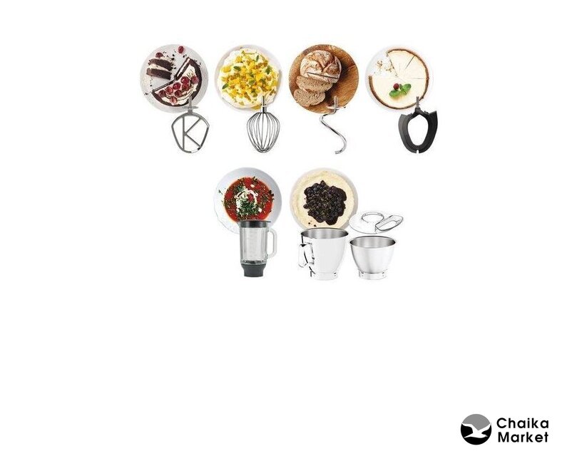 1200 Вт, планетарное смешивание, объем чаши: 5 л, терки, мясорубка, блендер
